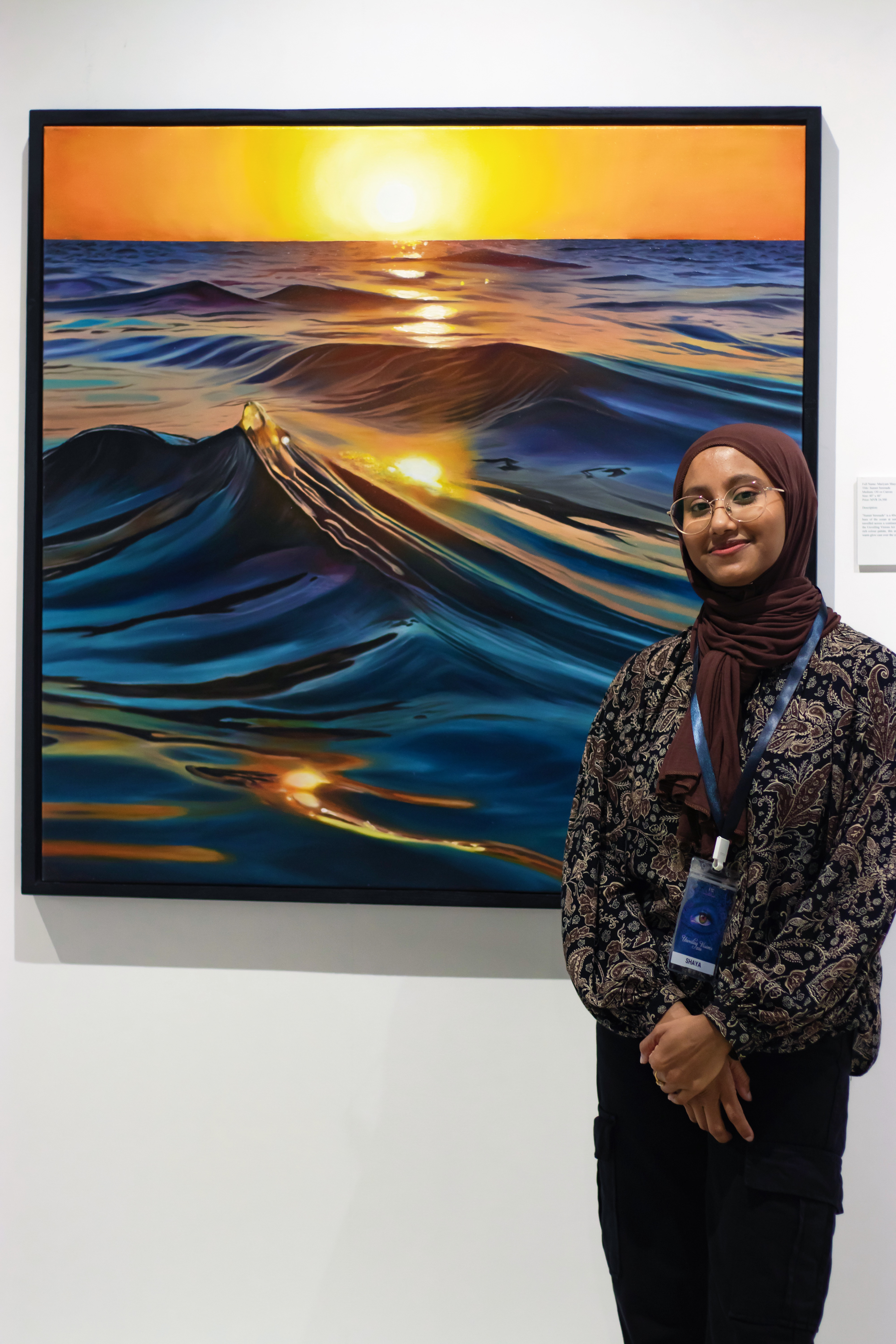 The 40 x 40 cm oil on canvas painting titled Sunset Serenade was created especially for Unveiling Visions 2024, an art exhibition held in the Maldives. Inspired by the tranquil beauty of the setting sun over open waters, the piece captures a moment of stillness and reflection, celebrating the harmony between light, color, and the sea.