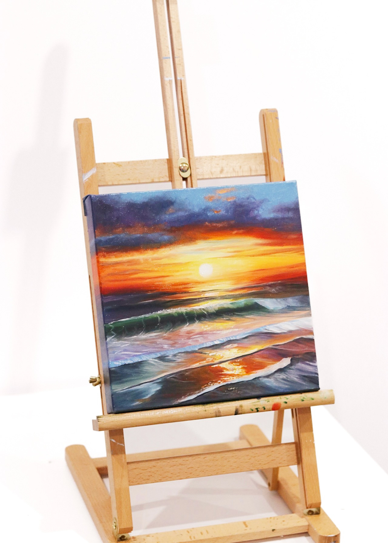 Though the sunsets where I live now are beautiful in their own way, there's something irreplaceable about watching the sun disappear into a clear, endless horizon. This canvas captures those memories - the way light danced on the water and the peace that comes when day turns to night. Every brushstroke holds the feeling of standing on that shore, watching perfection unfold again and again.