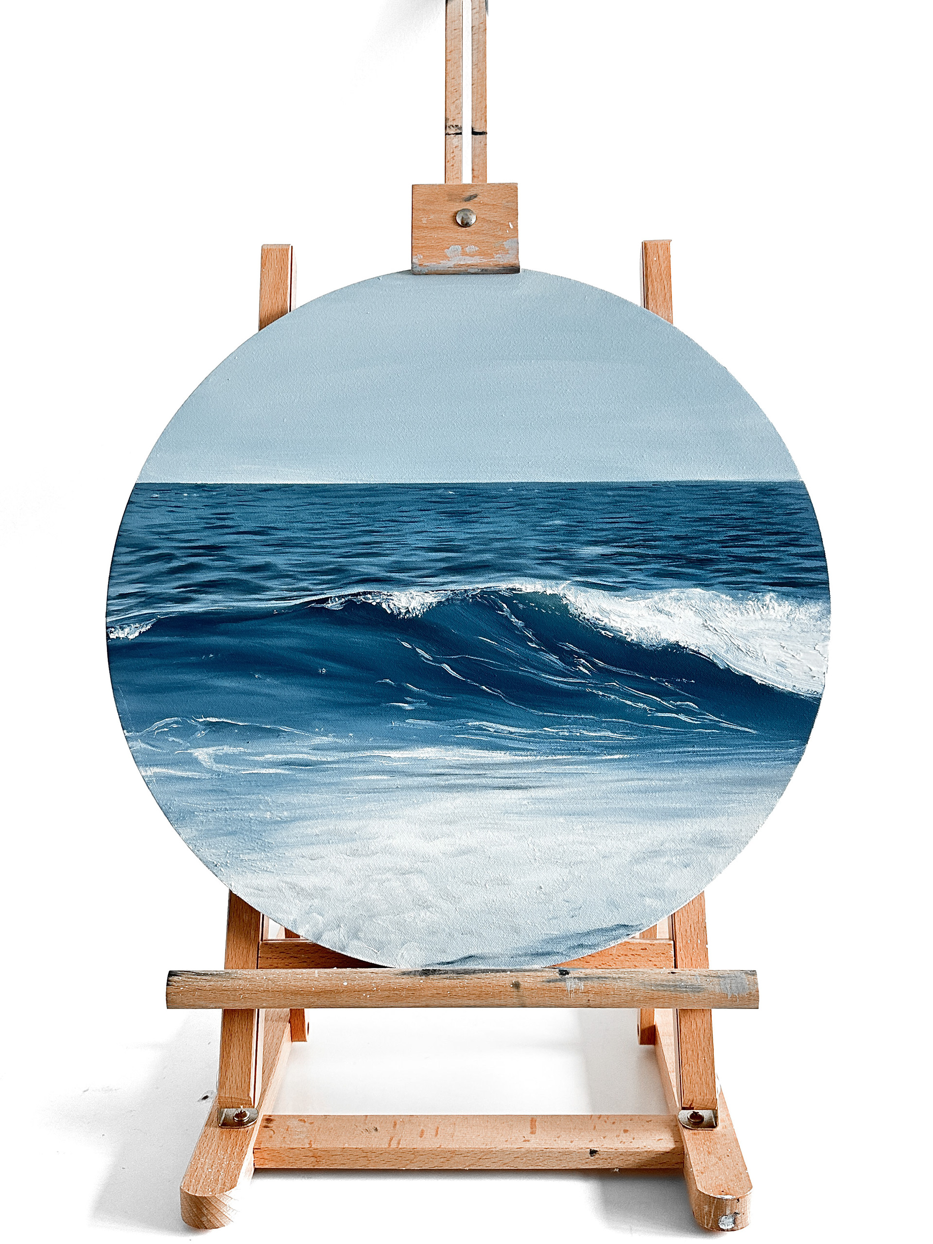 It was one of those cloudy, windy days at the beach when the sea turns wild. The rough conditions created fierce waves that crashed onto the shore with breathtaking power and beauty. I spent the evening capturing countless photos, mesmerized by each wave. Out of all those shots, this was the one that spoke to me - the lucky wave that earned its place on canvas. There's something about stormy seas that reveals the ocean's true personality, and this wave, caught mid-curl with its foamy white cap perfectly embodies the energy and awe i felt standing on that shore.